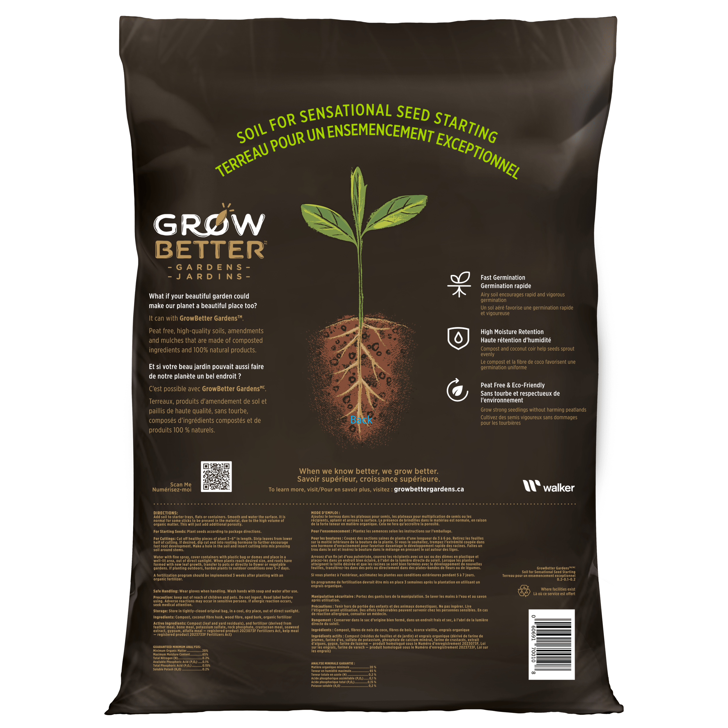 Le terreau GrowBetter GardensMC pour ensemencement exceptionnel est 100 % naturel et sans tourbe.